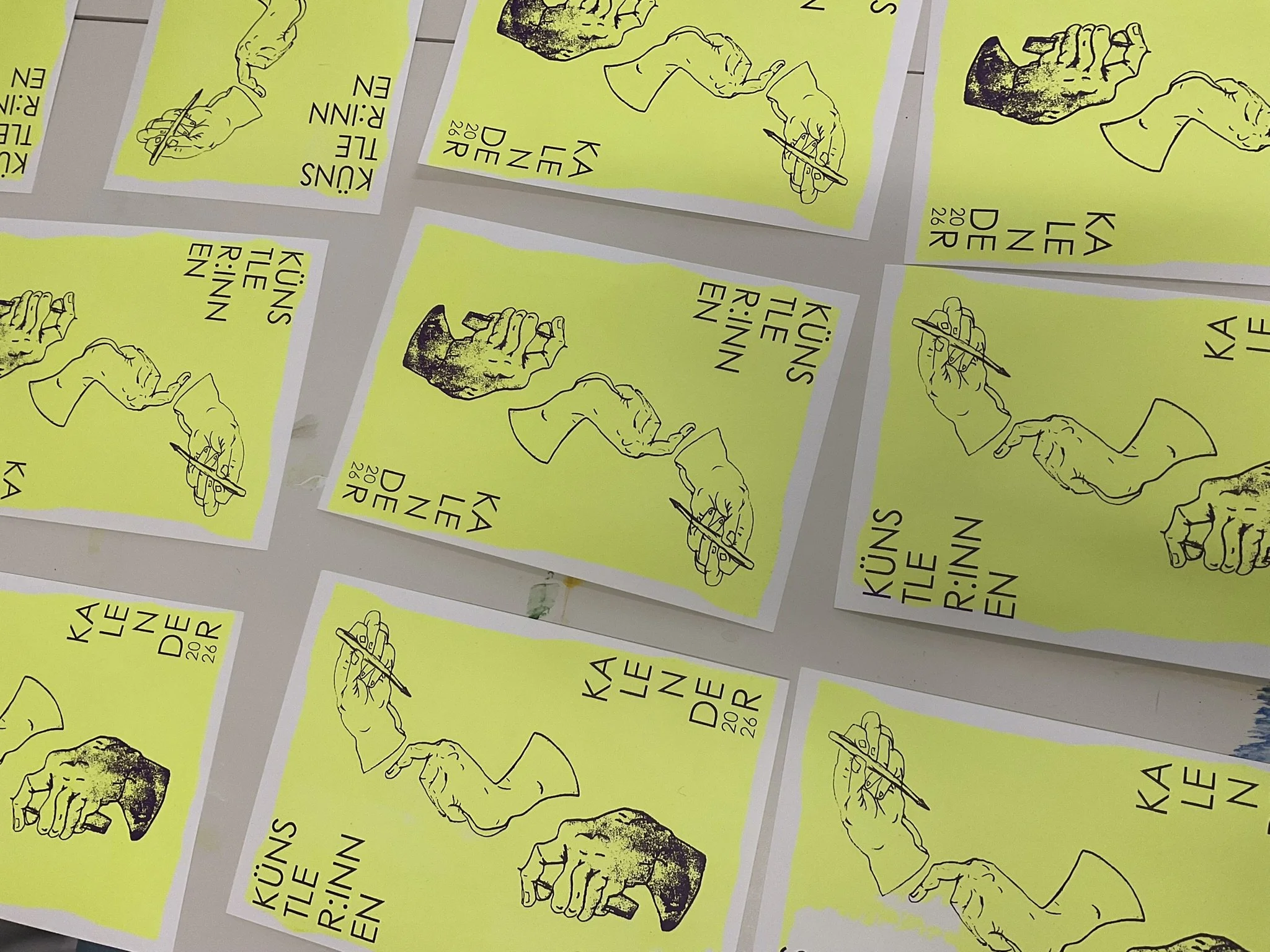 Jeder Künstler*in hat zwei Seiten des Kalenders gestaltet, die anschließend in Handarbeit als 50er Siebdruckauflage gefertigt wurden.